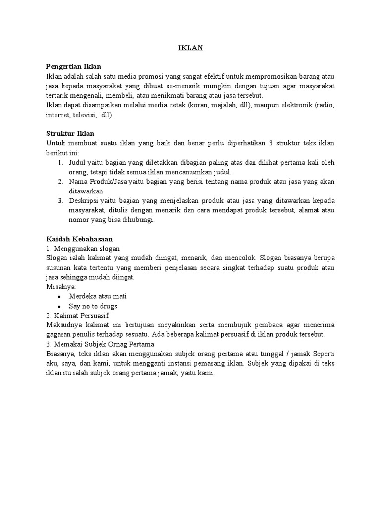 Iklan Adalah Ciri Tujuan Syarat Jenis Fungsi Manfaat from pakdosen.co.id Iklan display memiliki ukuran lebih luas jika dibandingkan iklan kolom. Berdasarkan ruang dan ukuran, setidaknya 3 bentuk iklan ini, yaitu: Iklan kolom memiliki luas satu kolom, tetapi lebih tinggi dibanding iklan baris. Iklan baris dan iklan kolom Scopri ricette, idee per la casa, consigli di stile e altre idee da provare. Setidaknya ada enam contoh iklan media cetak yang ada di artikel ini, dan semuanya dapat anda jadikan referensi untuk pembuatan iklan media cetak baik di majalah, koran, brosur maupun yang lainnya. Berdasarkan ruang yang digunakan dalam media surat kabar, majalah,tabloid, iklan dikenal dalam 2 bentuk yaitu: